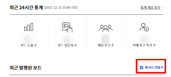 1.카카오 뷰 채널을 개설한다. 그리고 새 보드 만들기를 클릭한다.