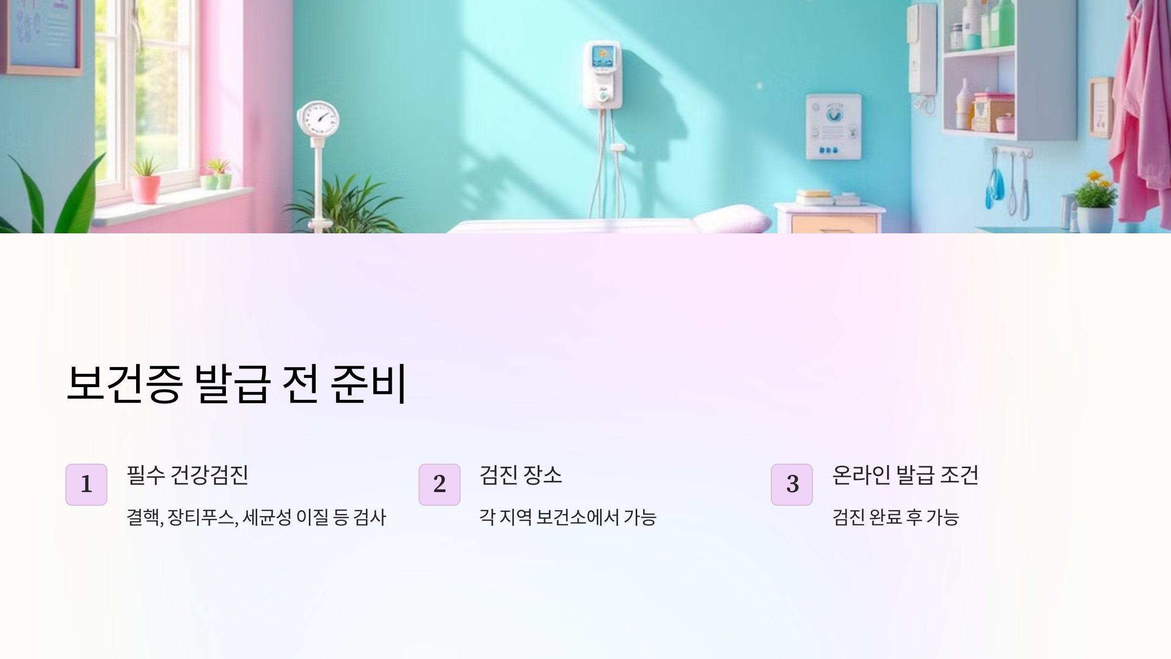 보건증 발급을 위해서는 식품 위생 및 안전과 직결되는 몇 가지 건강 검진을 반드시 받아야 합니다. 검진 항목으로는 결핵, 장티푸스, 세균성 이질 등의 전염성 질환 유무 확인이 포함됩니다. 이러한 검진은 보통 각 지역 보건소에서 간편하게 받을 수 있으며, 검진을 완료한 후에야 보건증 발급 신청이 가능합니다. 특히, 온라인 발급은 검진이 끝난 후에만 가능하므로 검진을 미리 완료하는 것이 중요합니다.